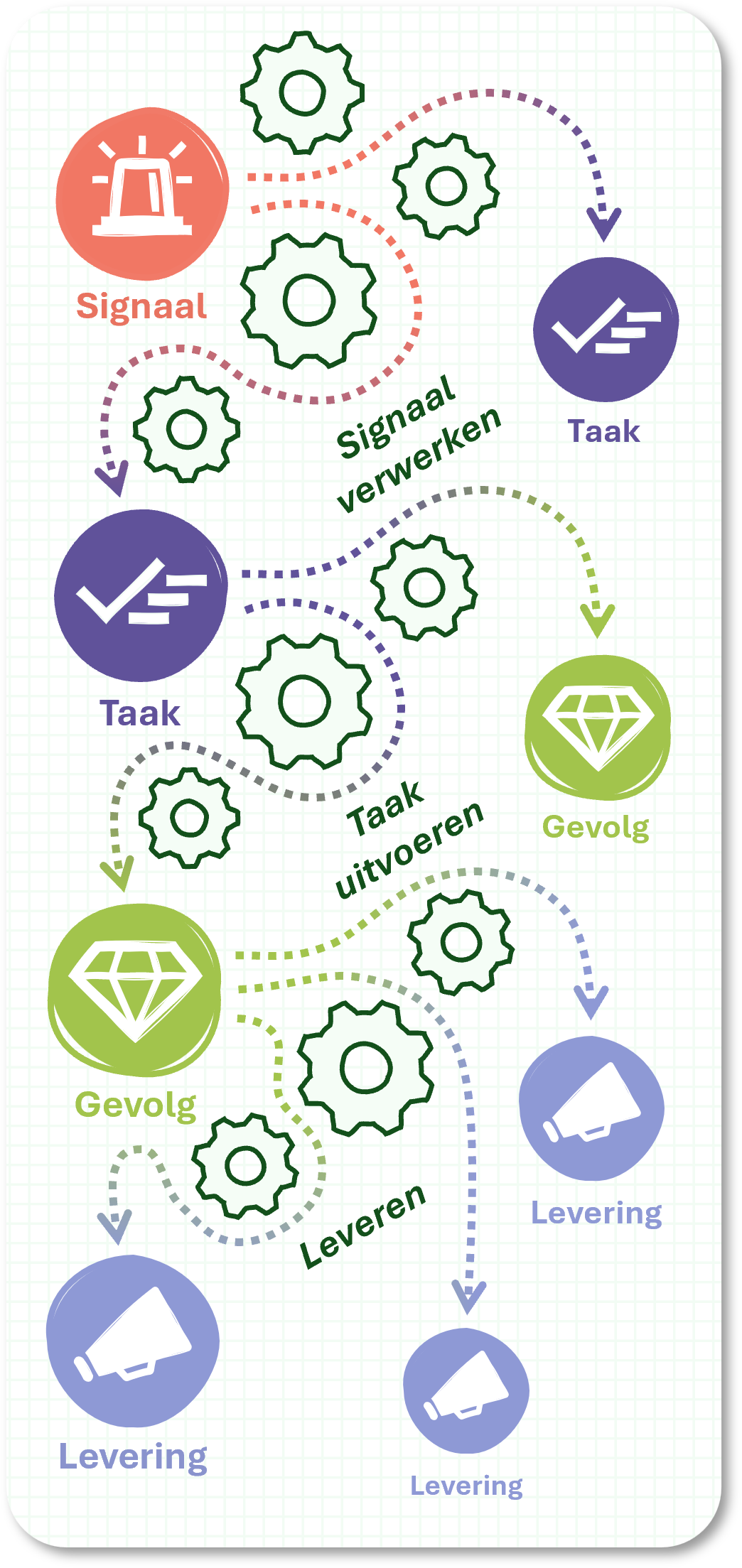 - Taak: de handelingen die naar aanleiding van een signaal moeten worden uitgevoerd.